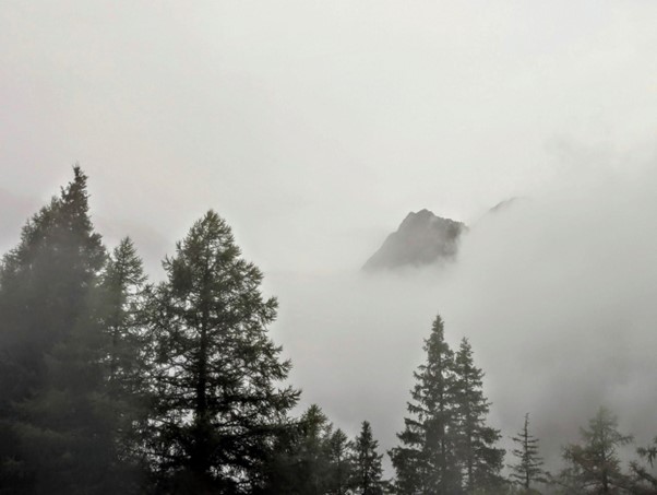 Je höher wir kommen, desto dichter werden die Wolken und auch die Sicht wird zunehmend schlechter.