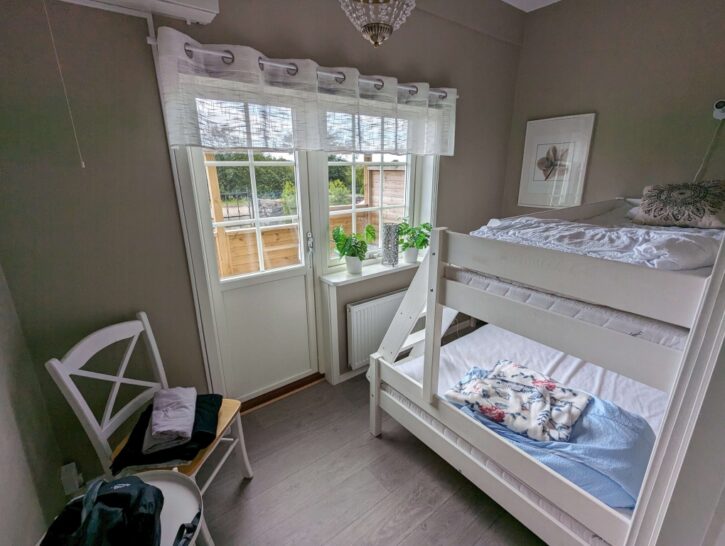 In einem wunderschönen, kleinen grünen Schwedenhaus bekomme ich ein noch schöneres Zimmer zugewiesen. Klein, gemütlich… Hier fühlt man sich wohl. Es gibt ein tolles Gemeinschaftsbad und auch die große Küche kann von allen genutzt werden. Bettwäsche muss man selbst überziehen, aber dann weiß man wenigstens, dass sie frisch gewaschen ist.