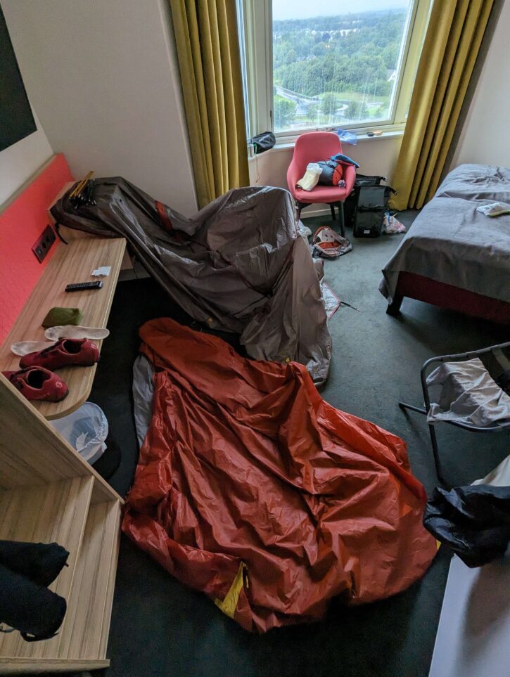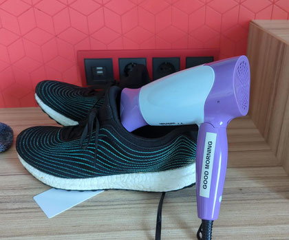 Das Zimmer ist zwar gar nicht so klein, dennoch reicht der Platz zum Trocknen aller Sachen nicht aus.